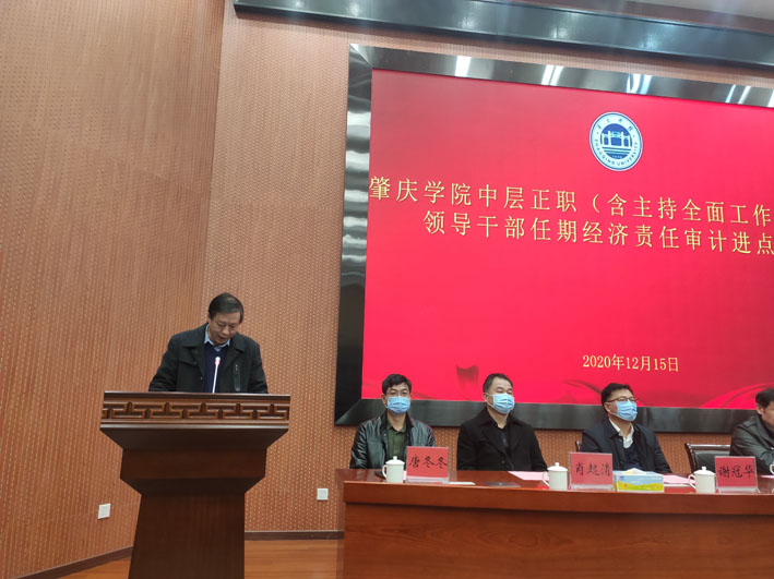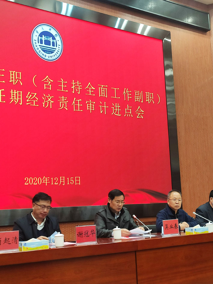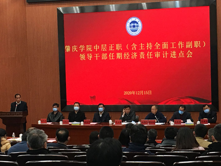 12月15日下午,学校在图书馆学术报告厅召开了2020年中层领导干部经济责任审计进点会。学校领导、党委委员、学校审计委员会成员、全体中层领导干部、审计处员工及审计工作组全体人员近200人参会。会议由学校党委副书记、纪委书记、审计委员会副主任黄劲松主持。